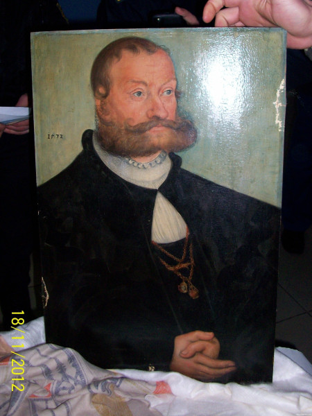 Під час перевірки в салоні мікроавтобуса виявили ящик з продуктами харчування, що стояв між сидіннями. На його дні знаходилася замотана в папір та тканину дерев’яна картина розміром 52 х 35 сантиметрів із зображенням чоловіка. На запитання про походження картини мандрівник відповів, що придбав її на ринку за 230 доларів, мовляв, вона йому дуже сподобалась. А так упакував її для перевезення нібито випадково.