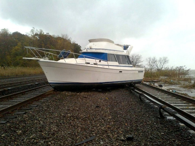 Викинута на рельси яхта, Оссінінг, штат Нью-Йорк, США