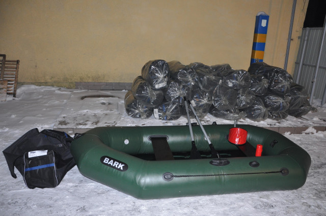 Поблизу держрубежу порушники почали вивантажувати мішки на підводу. Проте завершити свою справу їм не вдалося, двох з трьох чоловіків затримали. Саме вони на мікроавтобусі з українськими номерними знаками доставили до кордону човни фірми «BARK». А от останній порушник, погонич гужового транспорту, зустрічатися з прикордонниками не захотів. Помітивши охоронців кордону він розпріг коня та верхи втік з місця затримання, кинувши при цьому сани і товар.