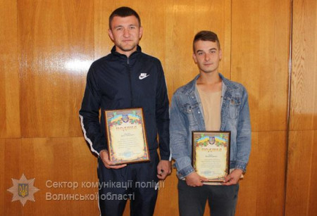 Т.в.о. начальника Ковельського відділу поліції Василь Бучинський за особистий внесок у боротьбі зі злочинністю вручив подяки 26-річним жителям міста Ковеля – Максиму Горгуну та Артему Прокопчуку.