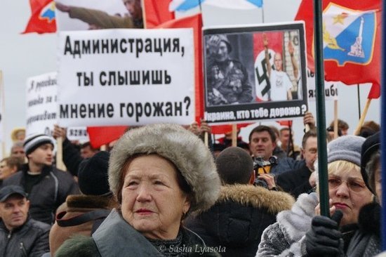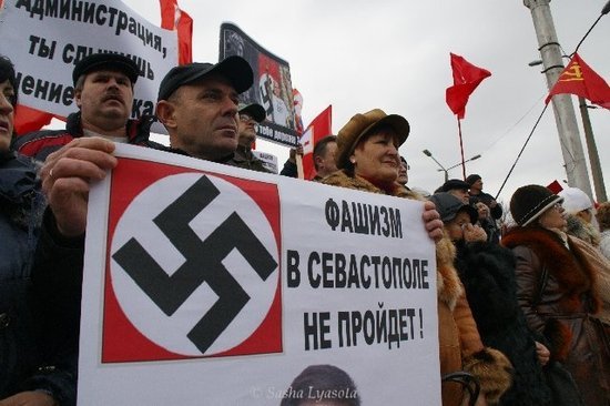 Крім прапорів своїх партій, люди тримали російські триколори та лозунги «Фашизм не пройде», «Севастополь проти фашизму», «Адміністраціє, ти чуєш думку городян?», а також скандували «Ганьба!» та «Росія». У пікеті брало участь близько 1,5 тисяч осіб.