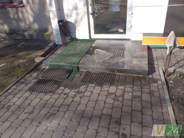 Лід розтрощив скляний дашок, який в якості декоративного елементу встановлений над вхідними дверима.