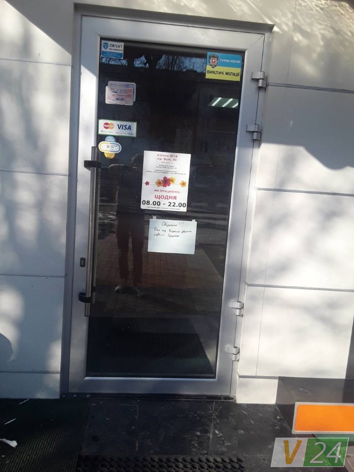 “Якби у цей час хтось виходив чи заходив до аптеки – міг би запросто отримати серйозну травму”, – припустив очевидець.