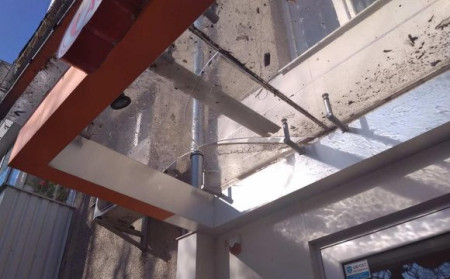 Лід розтрощив скляний дашок, який в якості декоративного елементу встановлений над вхідними дверима.