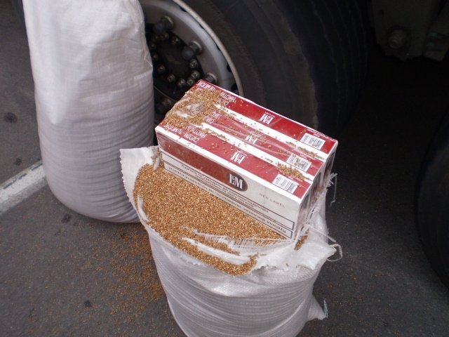 Автомобіль рухався із міста Херсон до Німеччини в місто Гамбург із вантажем 800 мішків подрібненого кореню коріандру. Прикордонний наряд із огляду транспортних засобів виявив пошкодження пломби на причепі автомобіля. Начальник Луцького прикордонного загону під час проведення спільного із митниками поглибленого огляду вантажу, у мішках із коріандром виявив майже 29 тисяч пачок цигарок марки LM та West.