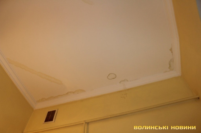 Луцькрада викидає гроші на ремонти дахів, а зі стелі продовжує капати вода