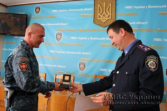 За врятоване життя хлопця та затримання злочинця, який наніс йому тяжкі тілесні ушкодження, заступник начальника УМВС України у Волинській області полковник міліції Анатолій Шумик вручив годинники охоронцям мобільної бригади ПП «Скорпіон – пульт», членам громадського формування «Спеціалізованого загону сприяння міліції «Правопорядок»» Олексієві Пилипюку та Володимирові Глинюку.