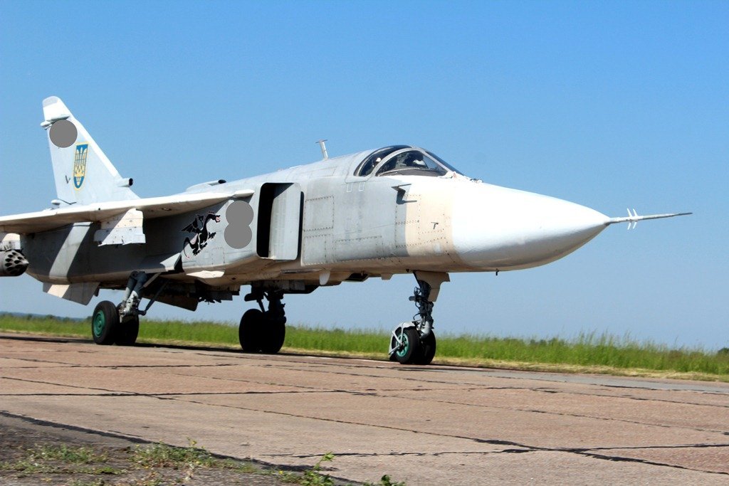 СУ-24 – фронтовий бомбардувальник з крилом змінної стріловидності, прийнятий на озброєння у 1975 році. Призначений для нанесення ракетно-бомбових ударів у простих та складних метеоумовах, вдень і вночі. Залежно від завдань, може нести ракетне або бомбове озброєння. Може використовуватися як літак-розвідник. Найвища точка підйому – 12 кілометрів, швидкість – до 1700 кілометрів за годину, в складі екіпажу – льотчик та штурман.