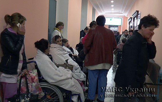 Міліція, вибухотехніки, кінологи, рятувальники, газовики і медичний персонал змушені були терміново виводити всіх хворих, серед яких і пацієнти онкодиспансеру, психлікарні, пологового будинку і шпиталю для інвалідів війни.