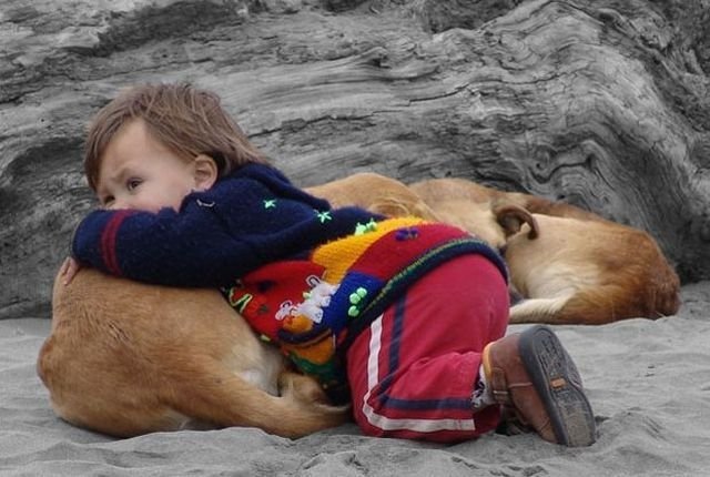 ...підтримую "777"...Ви колись бачили, щоб дитина накрила своїм тілом собаку?...собаці, мабуть, не сильно було уютно під тілом пацана....це вже з області фантастики...це вже Луцький Матросов, який закрив амбразуру дзота в 1941...такого пацана треба показати та похвальною ьграмотою нагородити....))))