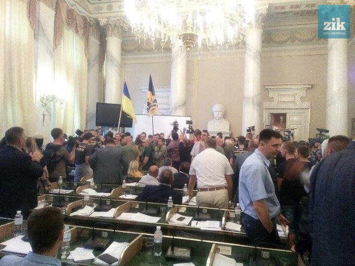 Сотня некерованих молодиків увірвалася в приміщення Львівської обласної ради.