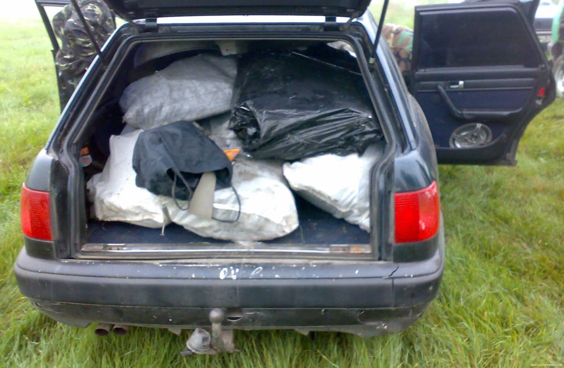Наряд відділу «Піща» виявив чоловіка, який завантажував у автомобіль «Ауді» мішки та коробки. Їх він діставав з меліоративного каналу, по якому на цій ділянці проходить лінія кордону з Білоруссю.