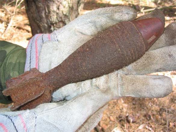 Міна лежала у землі на відстані 20 метрів від житлового будинку. Отож, про небезпечну знахідку повідомили до міліції.