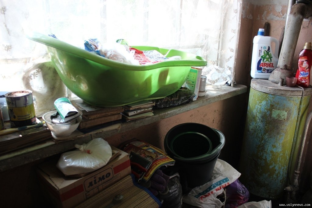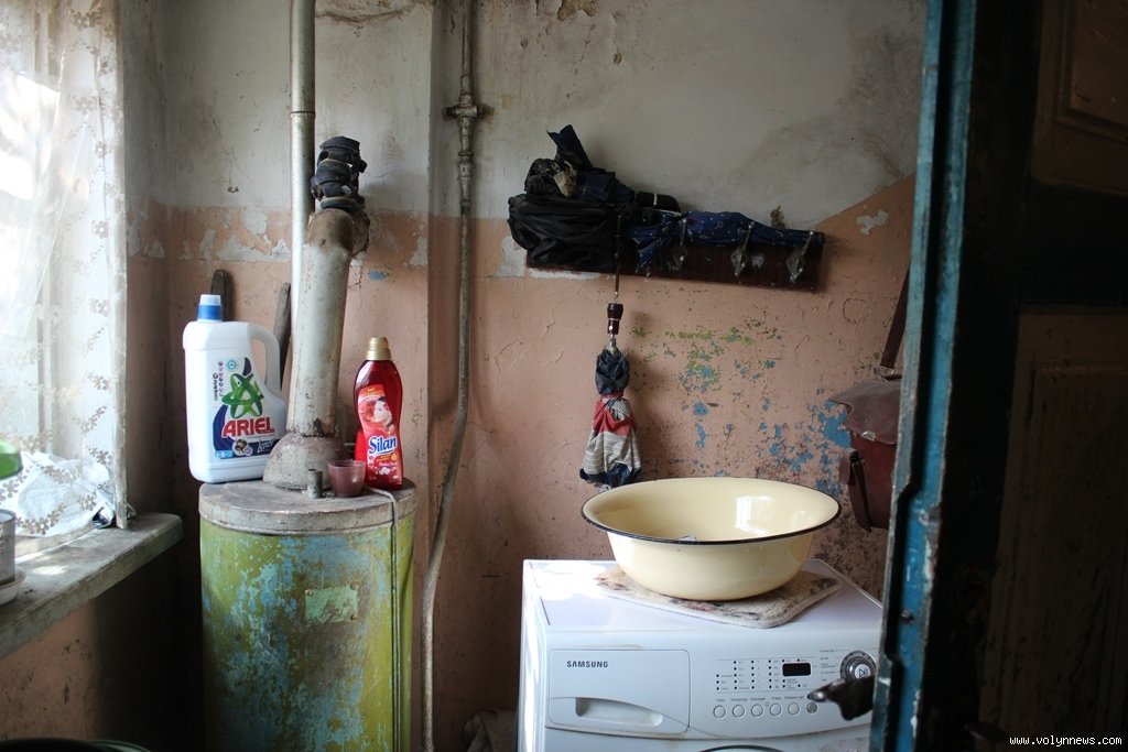 Розповідає, що купає дітей не у нормальній ванні, а у пластмасовому невеликому тазику. Пере білизну і дитячі речі руками, бо стареньку пральну машину боїться використовувати, мовляв, мати сказала, що коли Оксана користується електрикою, то у материній хаті - перепади напруги та зникає світло. Вона, каже, навіть одяг дітям не прасує, бо матір сердиться.