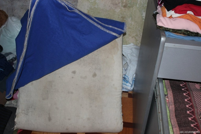 Старші діти утрьох сплять на маленькому ліжечку, мама ж - біля них на старенькому, «обшарпаному» матраці на підлозі.