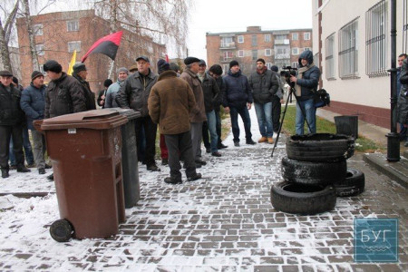 Мітинг у Нововолинську: під прокуратуру привезли сміттєві баки і шини. ОНОВЛЕНО