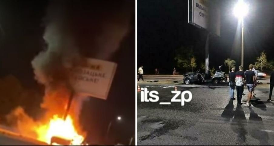 У Запоріжжі на Набережній автомобіль в’їхав у рекламний щит і загорівся. Відомо, що загинуло три людини, ще троє – в лікарні.