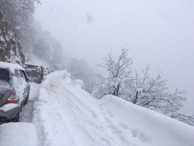 Очевидці заявили, що в заторі на трасі стоять вже понад 5 годин і не можуть спуститися вниз.