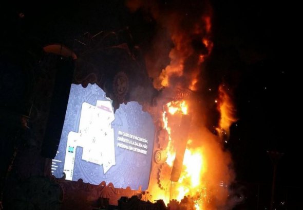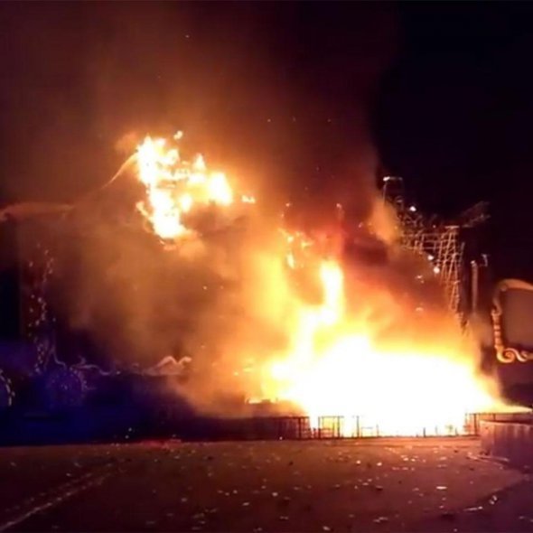 На кадрах видно, як величезний стовп полум'я піднімається зі сцени.