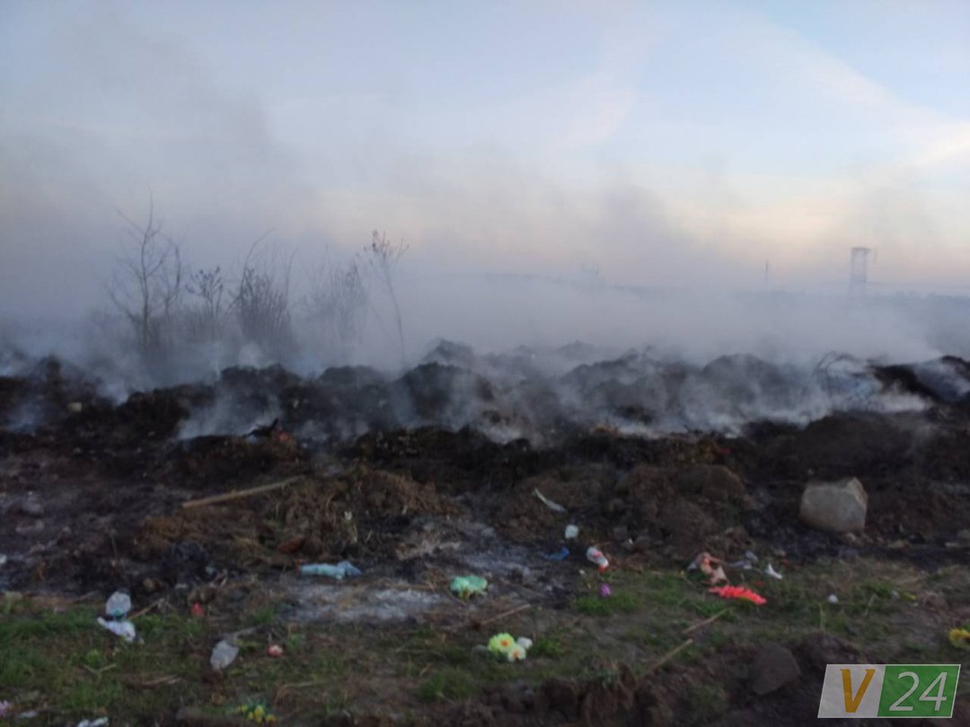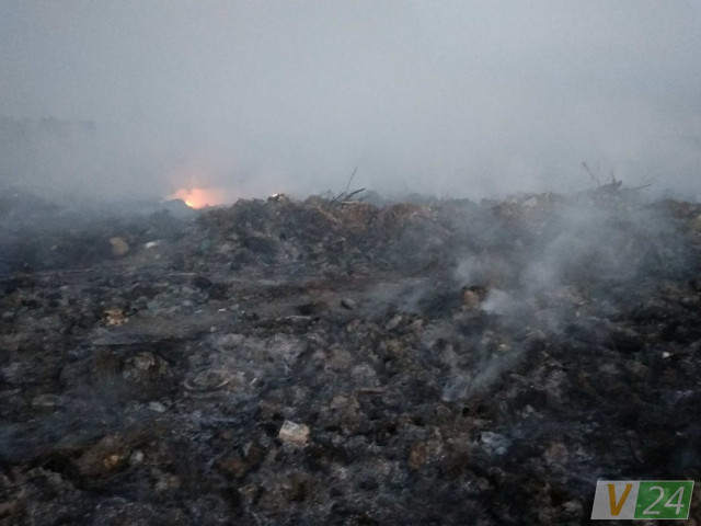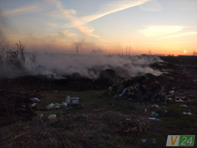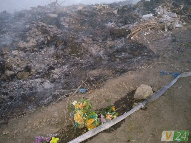 А у п’ятницю, 20 квітня, хтось цю гору підпалив. Пожежники уже кілька годин гасять сміття, однак воно продовжує тліти.