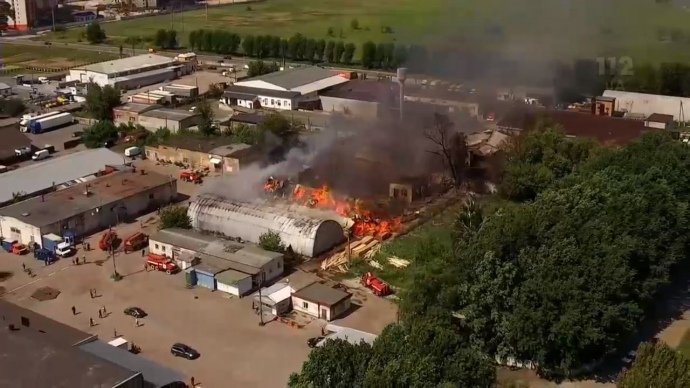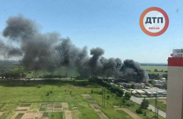 "5 червня о 13:40 до Служби порятунку надійшло повідомлення про пожежу на території колишньої оптової бази в окремо розташованих двох складських приміщеннях на площі близько 1500 кв. м. Жертв та постраждалих внаслідок пожежі немає", - повідомили в ДержНС.