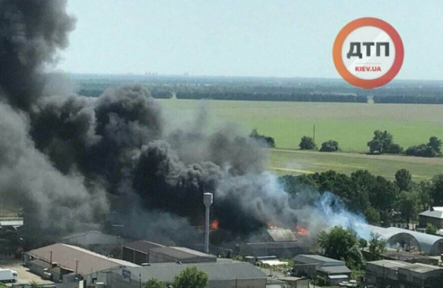 За словами речниці ДержНС у Київській області Вікторії Рубан, пожежа відбувається на складах біля сервісного центру МВС.