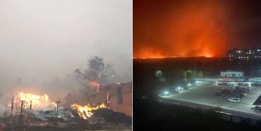 Полум'я пожеж видно з Сєвєродонецька.Вогонь підібрався до околиць Сєвєродонецька.У поліції Луганської області повідомили, що в Станично-Луганському районі в селі Красна Талівка загорілися чотири житлових будинки. Інформації про постраждалих не надходило.