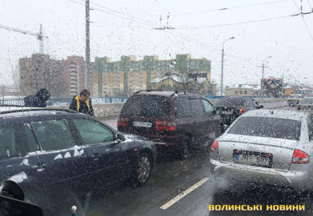 Два автомобілі Ford і Chevrolet зіткнулися на мосту, що сполучає проспекти Соборності та Перемоги у Луцьку.
