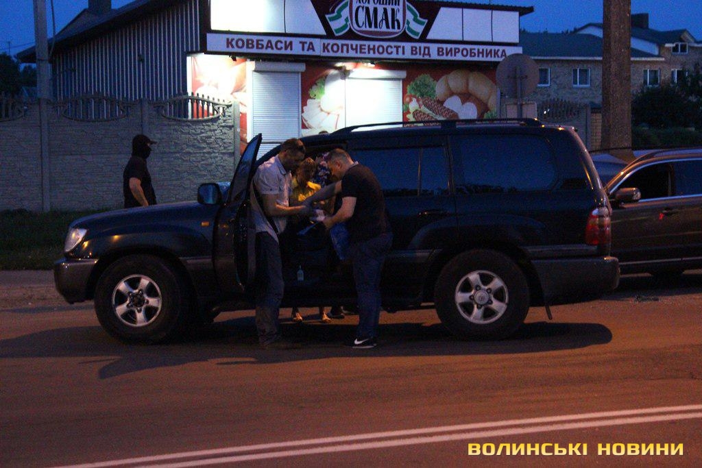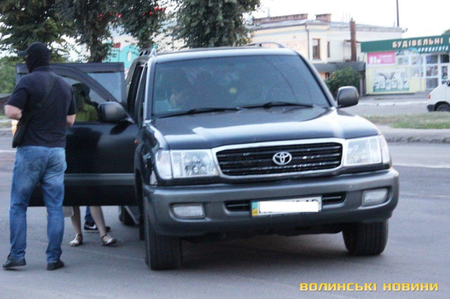 Очевидці повідомляють, що правоохоронці під час затримання вибили у авто бокове скло біля водія, ймовірно, аби дістати підозрюваного. Також зазначається, що на капоті машини розкладені долари США. Зі слів свідків, значну суму грошей вилучили під час затримання.