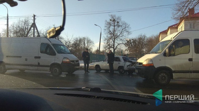 Мікроавтобус Renault в’їхав у «ВАЗ 2101». Задня частина легковика зазнала значних механічних ушкоджень.