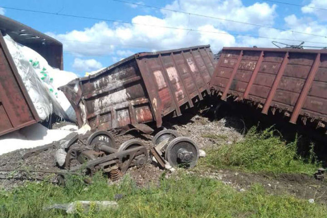 Відомо, що вантажний потяг перевозив зерно та добрива. Постраждалих внаслідок аварії немає.
