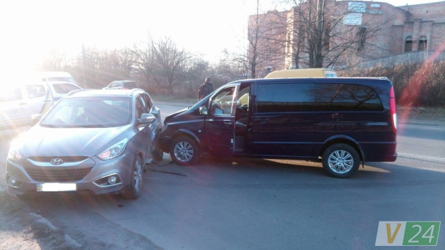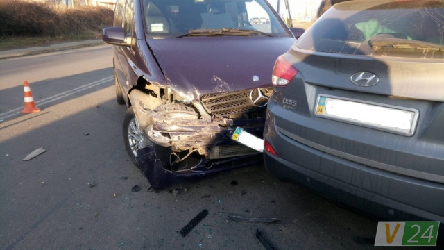 У напрямку за джипом їхав бус "Мерседес Віто". Водій мікроавтобуса не встиг зреагувати на несподіваний маневр позашляховика і врізався в його задню ліву частину.