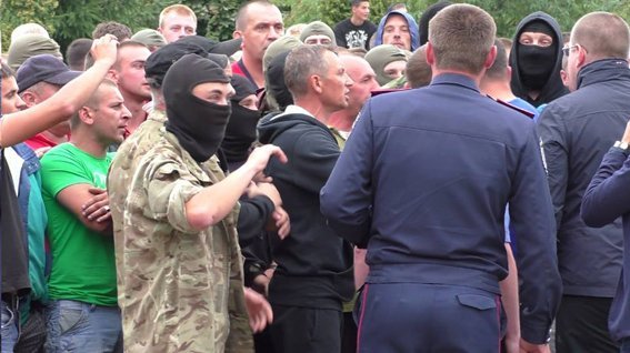 Під час розмови із місцевими чиновниками люди вели себе агресивно, шарпаючи представників влади за одяг і лаючись нецензурною лайкою, частина з яких була у балаклавах. Коли ж натовп пішов на правоохоронців, на підмогу працівникам райвідділу надійшли бійці спецпідрозділів та Національної гвардії. Один із натовпу у балаклаві намагався відібрати відеокамеру у працівника міліції, покликавши із собою ще кілька осіб.