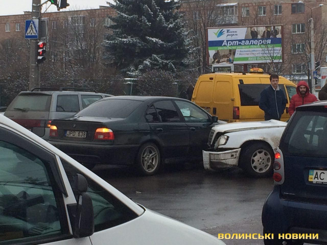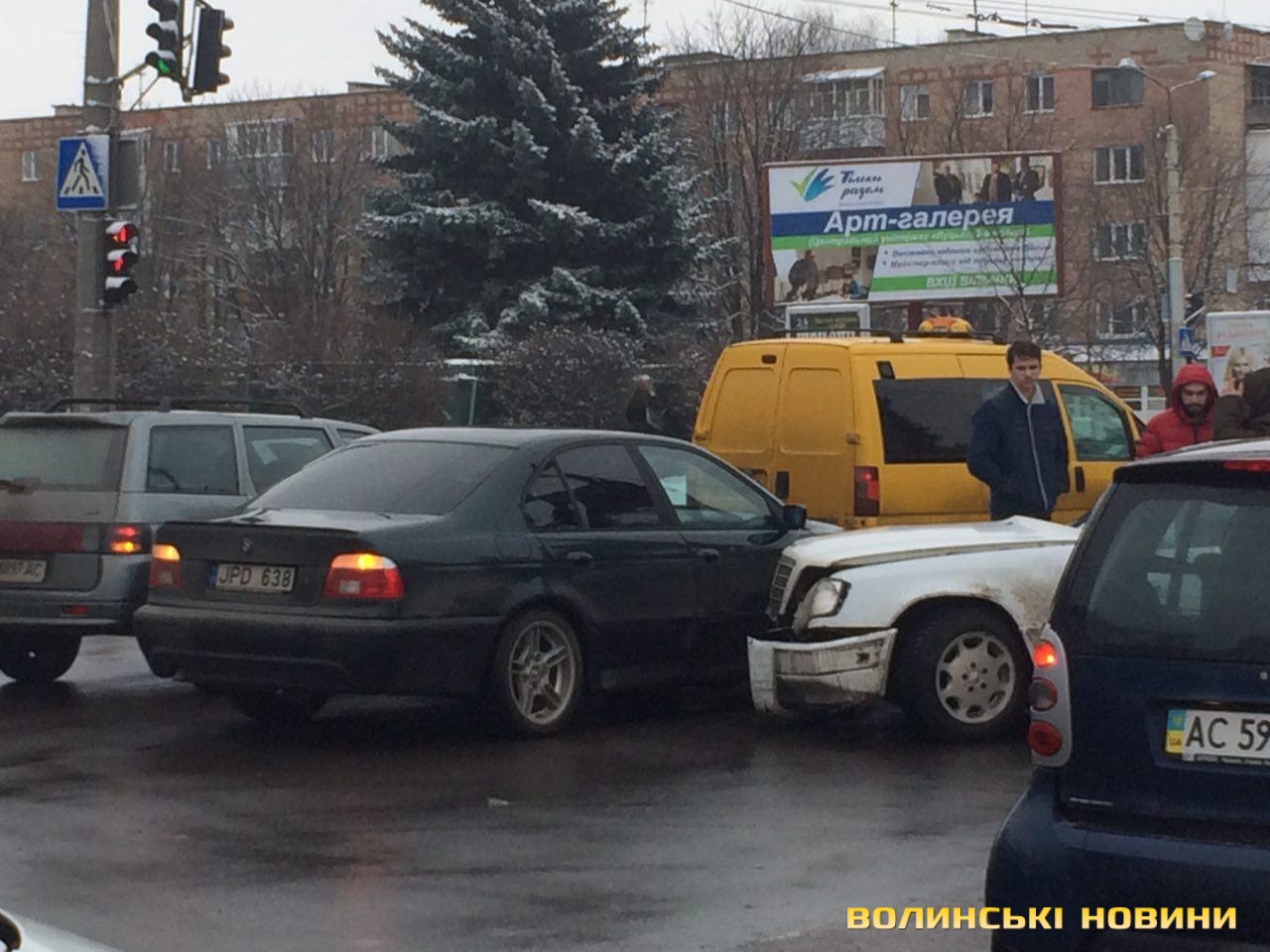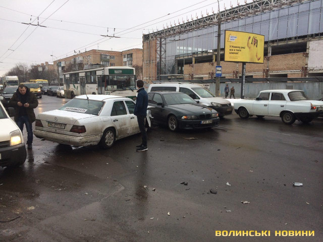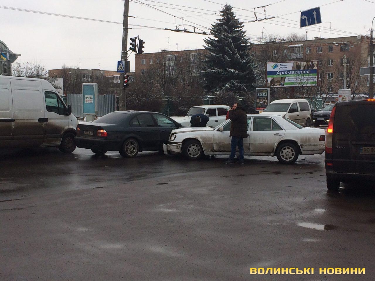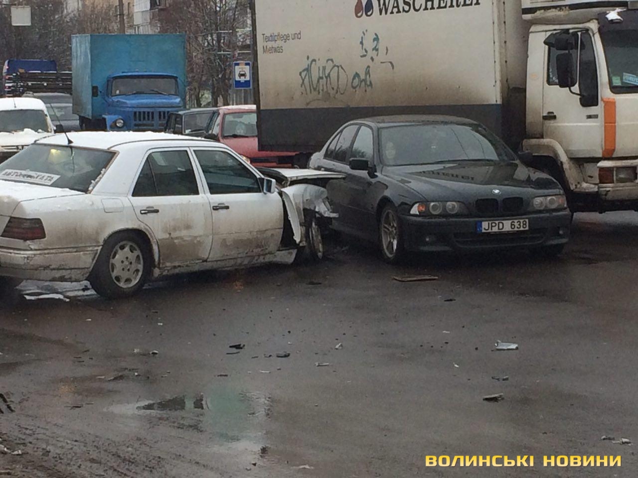 Так, у Луцьку біля електроапаратного заводу перед переходом зіткнулися «БМВ», «Мерседес» та «Опель».