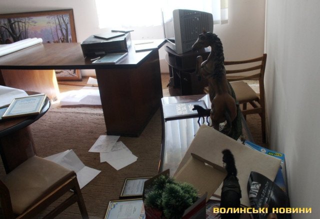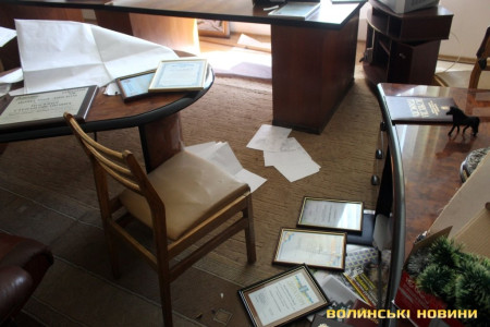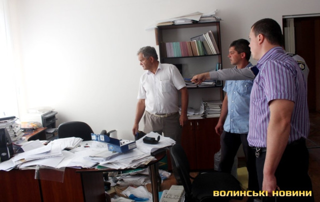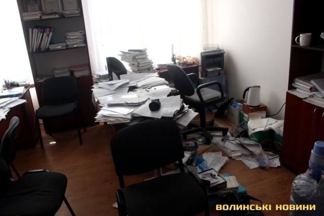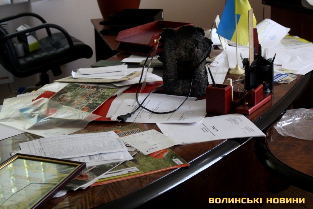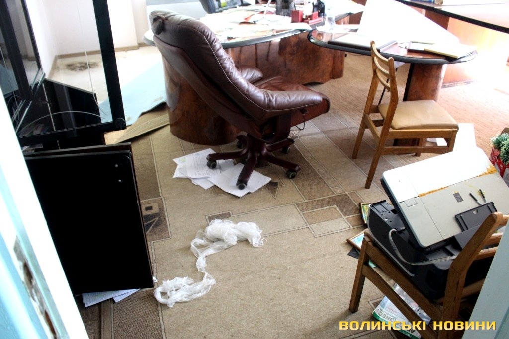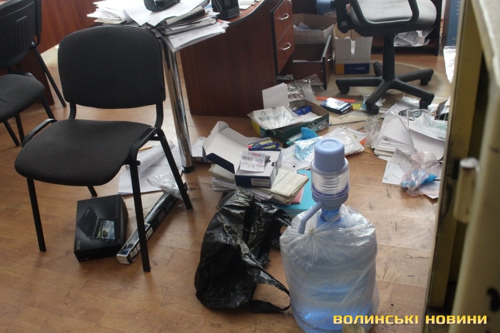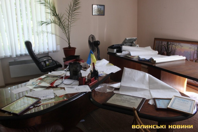Всередині кабінету можна побачити розкидані документи та розрізаний сейф. Адвокат Ярослав Грищенко запевнював, що правоохоронцям готові були надати усі необхідні документи.