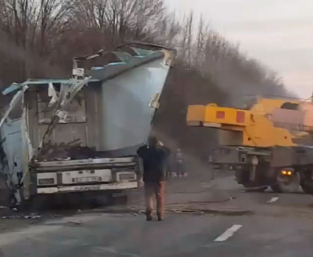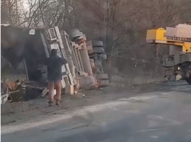 З водієм все ок. Зупинявся у суботу вже по темному біля тієї фури. Стояла машина легкова поруч - казали що стережуть товар. Ще сказали - що водій "зловив" зловив узбіччя і фуру понесло. В той вечір дійсно була погода для їзди погана