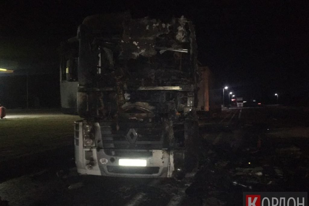 Вогонь знищив кабіну водія, пошкодив моторний відсік, гальмівну систему, ходову частину. Ймовірною причиною виникнення пожежі є несправність електричної системи автомобіля.