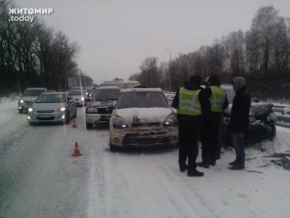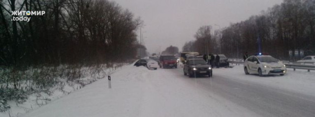«Сьогодні, 8 січня, вранці на межі Житомирської і Київської областей на одному кілометрі автодороги Київ-Чоп сталася ДТП за участю більш як 14 автотранспортних засобів. Потерпілих немає. Причиною стала слизька дорога», – сказала вона.