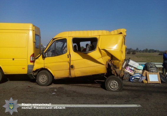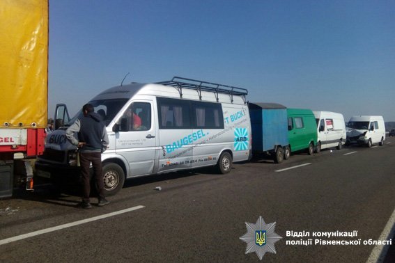 Поліцейські встановили, що водій вантажівки «RENAULT», рухаючись у напрямку Володимирця в’їхав у мікроавтобус, який прямував у попутному напрямку. Внаслідок цього, за інерцією, автівка зіткнулася ще з одним транспортним засобом. В цей час три мікроавтобуси, які знаходилися позаду «RENAULT» загальмували і зупинилися. Втім водій автомобіля «MERCEDES Sprinter», не зорієнтувавшись у ситуації, в’їхав у мікроавтобус, який знаходився попереду. Після цього за ланцюговою реакцією відбулося подальше зіткнення автомобілів.