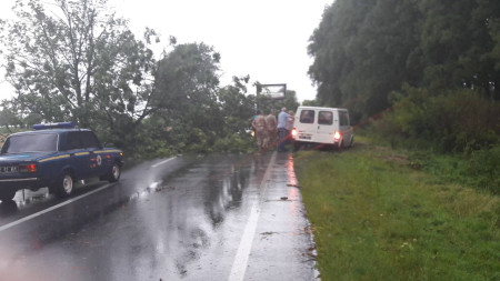 Станом на 19:43 дерево з дороги прибрали. Проте, зі слів очевидців, поруч із ним лежить ще одне повалене дерево, тому рух наразі повністю не відновлено. За словами свідків пригоди, на трасі пройшовся сильний дощ з вітром, та подекуди градом.