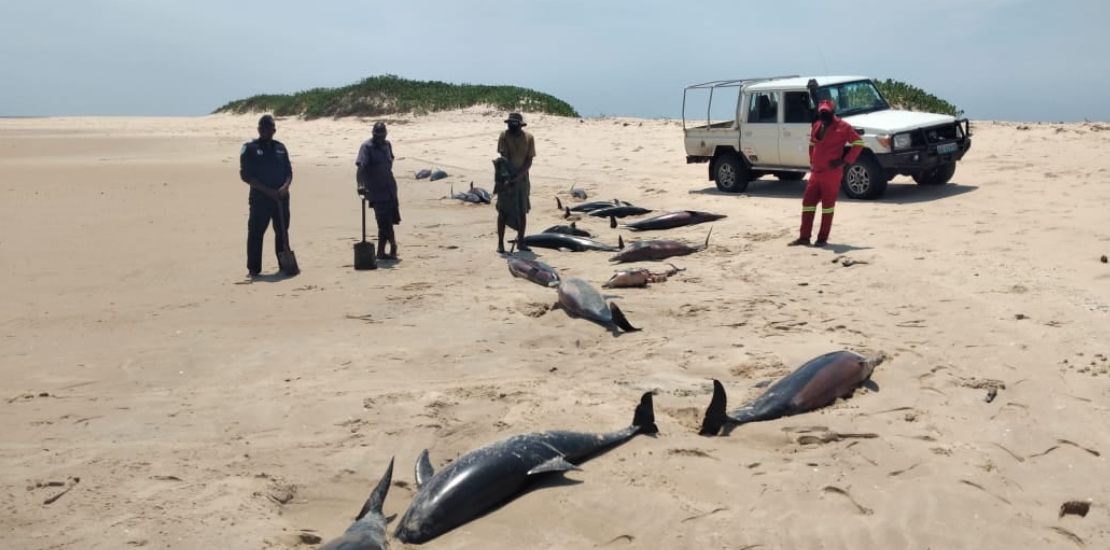 Під час патрулювання 21 лютого фахівці виявили тіла 25 дельфінів на узбережжі острова Базаруто, що є частиною національного парку однойменного архіпелагу. Уже вранці 23 лютого на тому ж місці мертвих дельфінів було ще 86.