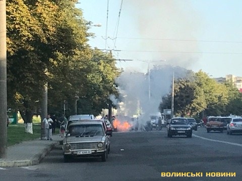 Легковий автомобіль Skoda Octavia спалахнув на проспекті Відродження у Луцьку.