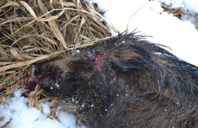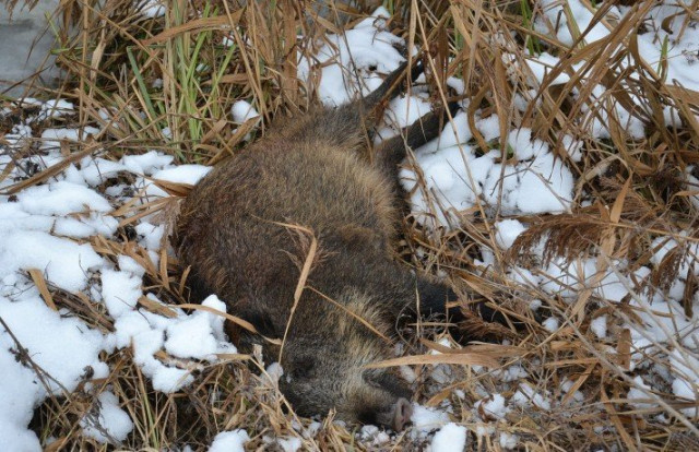 Тож на нраді сказали, що треба звести до мінімуму кількість кабанів, от хтось і виконує вказівки, а чоловік знайшов трупика і ніс собі...
