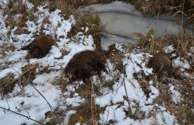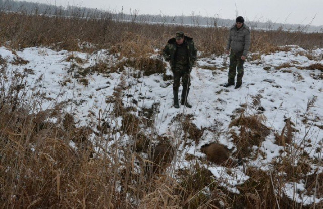 Поряд знайшли криваві сліди від туші та сліди інших мисливців. Неподалік на березі невеликої річки Конопельки, що протікає через «Звірівське», правоохоронці виявили туші ще 3 убитих кабанів.