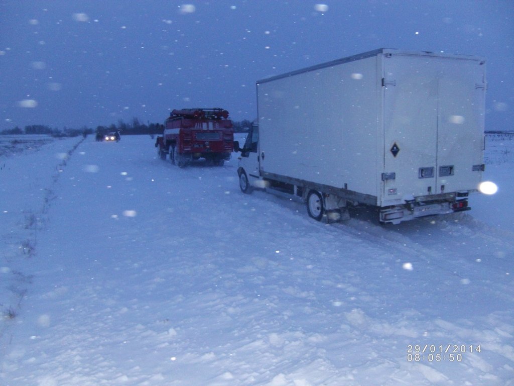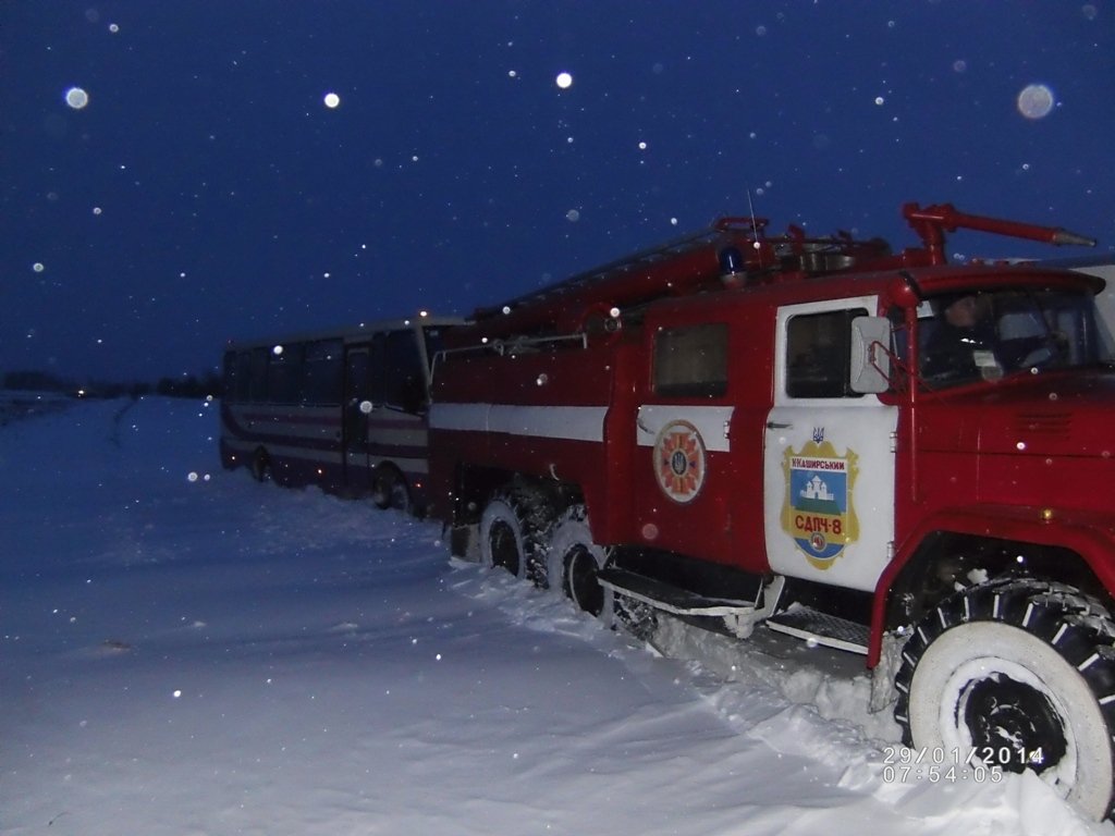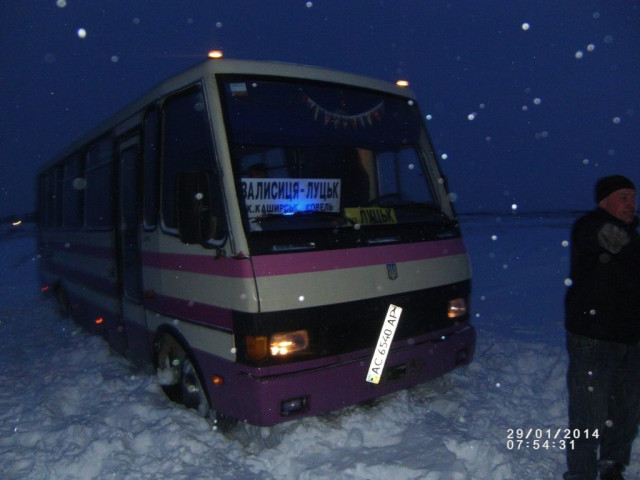 У Камінь-Каширському районі поблизу села Добре пожежною автоцистерною на шасі ЗіЛ-131 відбуксирували з снігового замету пасажирський автобус «Еталон» з 11-ма пасажирами.