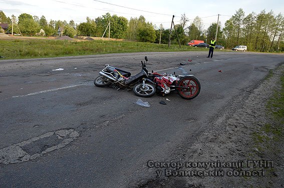 На Волині п’яний мотоцикліст на швидкості врізався в попутний мотоцикл
