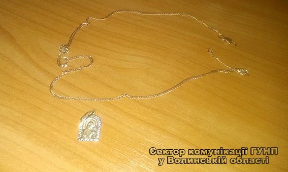 24 травня до працівників поліції звернулась 31-річна місцева мешканка із заявою про крадіжку. Як повідомила жінка, в обідню пору на гостину до її оселі зайшла подруга зі своїм знайомим. Через деякий час чоловік пішов. Згодом виявилося, що гість зірвав з шиї 3-річної дочки господині золотий ланцюжок з іконкою.