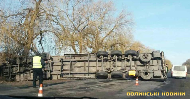 Аварія трапилась 16 березня. Про причину ДТП наразі не відомо, проте нею міг стати різкий маневр автомобіля, або технічна несправність. На місці працює поліція. Рух дорогою, що веде з Луцька на Ковель, - ускладнений. Адже, перекинувшись, фура перекрила майже всю дорогу.