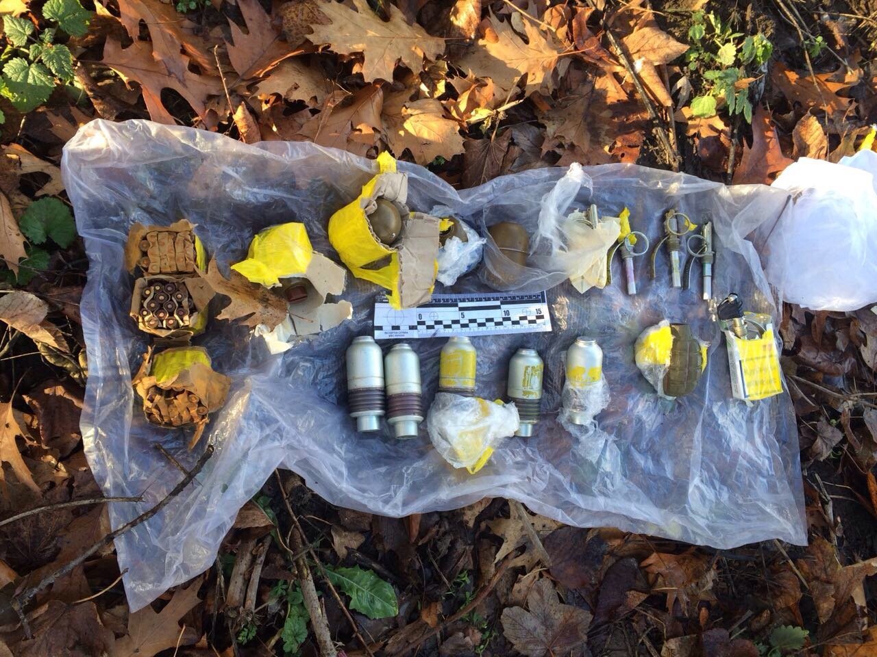 Зі схрону вилучено п’ять гранат РГД та Ф-1, гранати до підствольного гранатомета, набої калібру 5,45 міліметра.