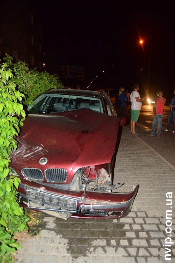 Унаслідок зіткнення автомобіль «БМВ» вилетів на пішохідну частину біля будинку № 15. Автомобіль «Фіат Добло» відкинуло в легковик-мінівен «Крайслер» темного кольору.